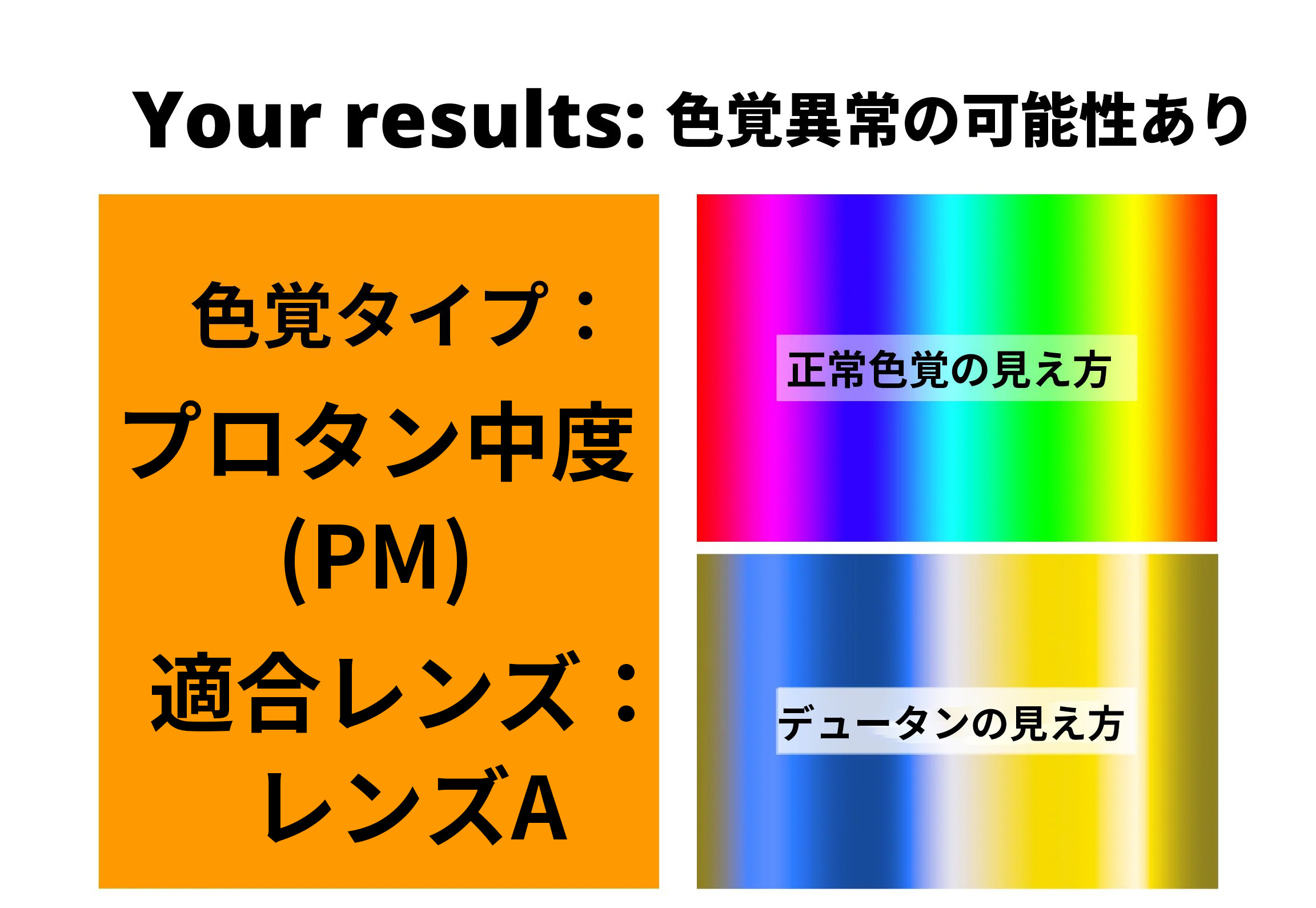あなたはの色覚タイプは 「中度のプロタン」適しているレンズは「レンズA」.